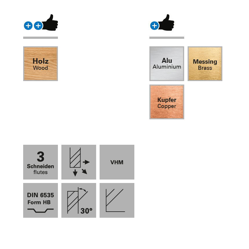 Vollhartmetall-Schaftfräser mit 3 Schneide/n