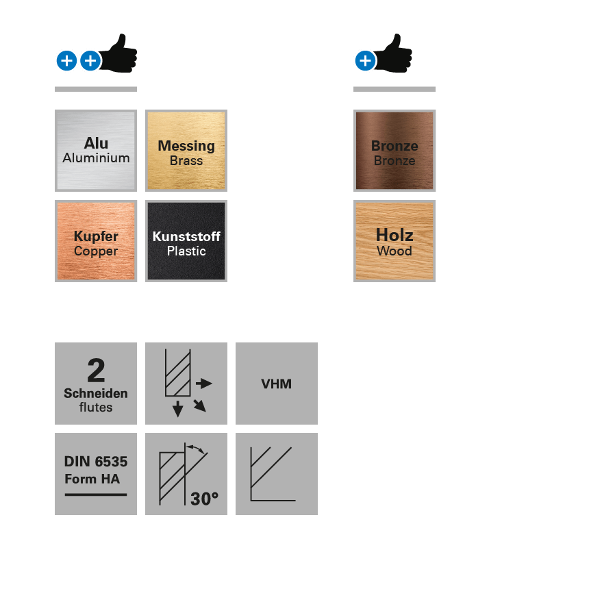 Vollhartmetall-Schaftfräser mit 2 Schneide/n