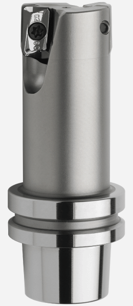 Dieses Monoblockwerkzeug auf HSK-E 25 Basis wurde für hocheffizientes Überplanen entwickelt. Der erforderliche Eintauchwinkel beträgt 3-5°.
