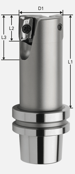 Dieses Monoblockwerkzeug auf HSK-E 32 Basis wurde für hocheffizientes Überplanen entwickelt. Der erforderliche Eintauchwinkel beträgt 3-5°.